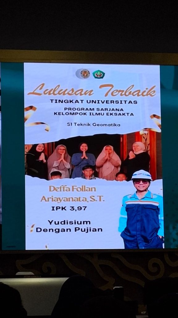 Di antara mereka, Deffa Follan Ariyanata, S.T. tampil menonjol sebagai Lulusan Terbaik Tingkat Universitas bidang Eksakta, dengan IPK mengagumkan 3,97 (cum laude). Di balik prestasinya, tersimpan kerja keras yang tak sederhana. Tugas akhirnya, “Analisis Tingkat Risiko Banjir dan Tanah Longsor pada Jalur Kereta Cepat Jakarta–Bandung DK99+000–DK108+000”, menunjukkan kepedulian ilmiahnya terhadap isu infrastruktur dan mitigasi bencana di tanah air.